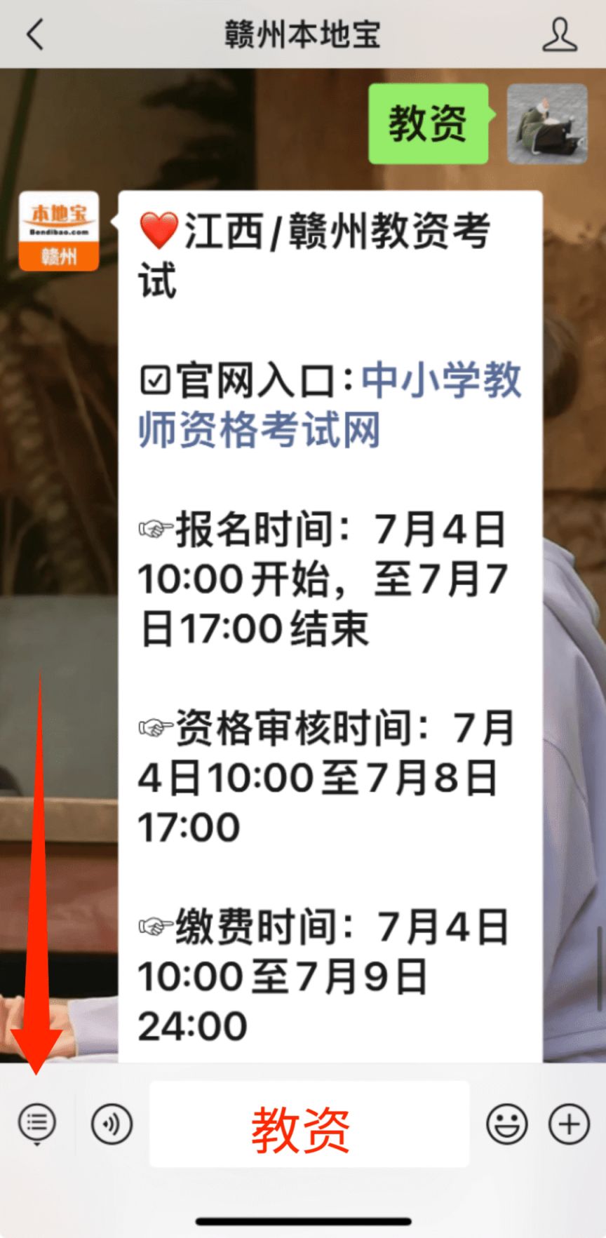 温馨提示:微信搜索公众号【赣州本地宝】,关注后在对话框回复【教资】即可了解2025江西教资考试报名、准考证打印等最新信息。
